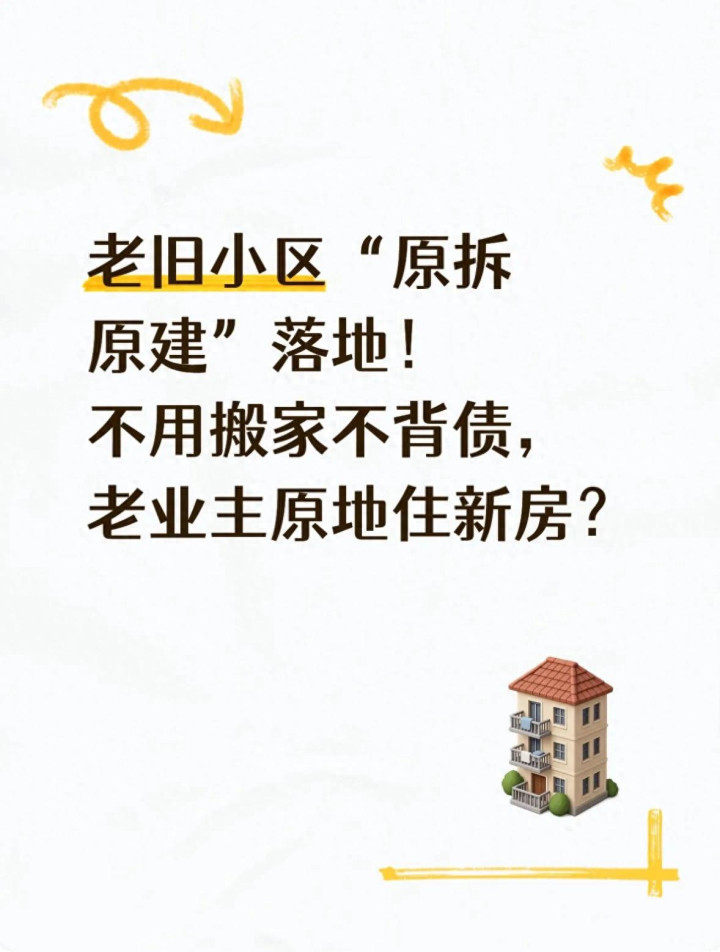 城市里的不少老旧小区,早就没了当年的模样:墙皮一块块脱落,下雨天窗户漏水、墙面返潮,水电管线老化得让人提心吊胆,没有电梯的老楼,老人小孩上下楼更是费劲。住在里面的业主们,看着房子破旧却没辙,重新买房太难,只能凑活着住。最近“原拆原建”政策火了,传说老房子能原地拆掉重建,业主不用搬家、不用背房贷,就能住上新房,这让老小区住户们都盼坏了。