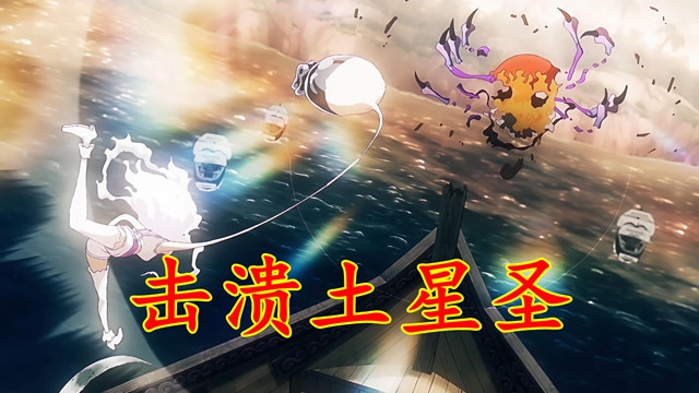 路飞这边,土星圣追击而来,直接跳到了巨兵海贼团的海贼船上。大仇人在前,回想着父亲大熊和母亲金妮的悲惨遭遇,波妮双亲的思念为力量,再度变身尼卡,和尼卡路飞一起,将萨坦圣打成了碎片。可惜是不死之身,还是会恢复再生。