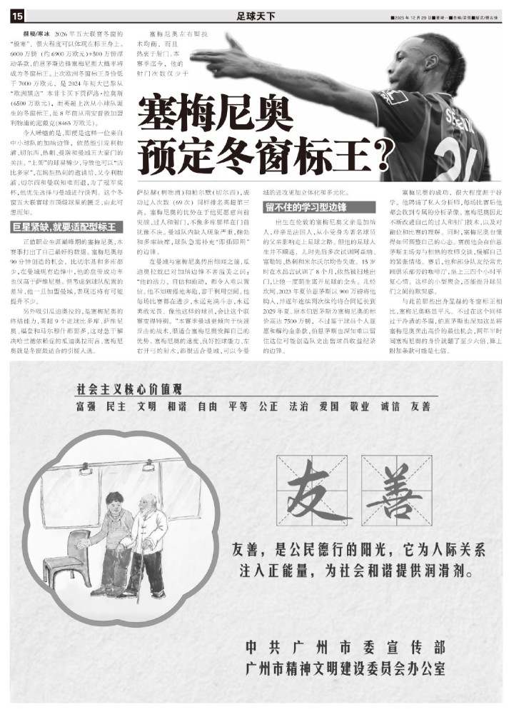 撰稿/寒冰 2026年五大联赛冬窗的“极寒”,很大程度可以体现在标王身上。6000万镑(约6900万欧元)+500万镑浮动条款,伯恩茅斯边锋塞梅尼奥大概率将成为冬窗标王。上次欧洲冬窗标王身价低于7000万欧元,是2024年初大巴黎从“欧洲黑店”本菲卡买下贡萨洛·拉莫斯(6500万欧元),而英超上次从小球队诞生的冬窗标王,是8年前从南安普敦加盟利物浦的范戴克(8465万欧元)。