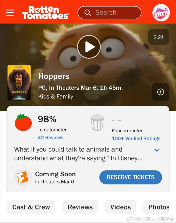 口碑层面,影片首映曾在烂番茄拿下98%新鲜度,创下皮克斯近十年来最好成绩。豆瓣目前评分7.7分,不少观众在评价中提到,影片没有生硬的说教,而是用孩子能听懂的故事传递了环保的理念,“全程被河狸可爱到心化,看完心情格外治愈”,“适合全家一起看,笑点和泪点都恰到好处”。随着口碑持续发酵,该片后续票房仍有稳步攀升的潜力。